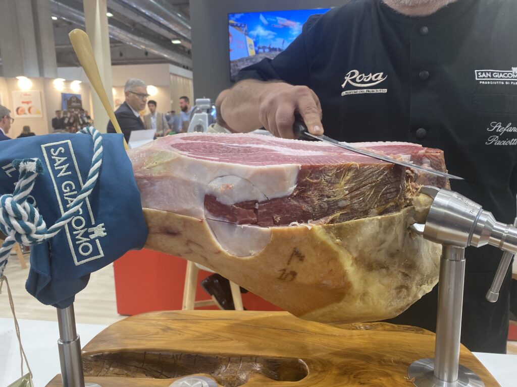 Ma Raspini, per par condicio, ha pensato anche a coloro che invece di un ‘cotto’ sono alla ricerca di un ‘crudo’ di altissima qualità, magari da gustarsi tagliato al coltello. Ecco allora che ci si deve spostare in Val Baganza, in provincia di Parma, al prosciuttificio San Giacomo (un altro dei marchi controllati da Raspini). È qui che nasce il Prosciutto Crudo di Parma Il Monarca, che ben si riconosce dal fazzoletto (di colore blu, ça va sans dire…) che ne avvolge il gambetto. È un salume, di pezzatura superiore ai 10 kg., che stagiona almeno due anni (e spesso anche diversi mesi in più) in locali idonei, ben esposti al ‘marino’ (la brezza che soffia dal golfo della Spezia). Ne nasce un Prosciutto che è la quintessenza del Parma: ben stagionato e profumato, ma dolce e soave, senza essere – quindi – né troppo ‘morbido’ né troppo impregnato di aromi di cantina. Un’esperienza ‘mistica’ da gustare assieme a un boccone di torta fritta e a una buona bollicina metodo classico. Bon apetit!